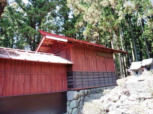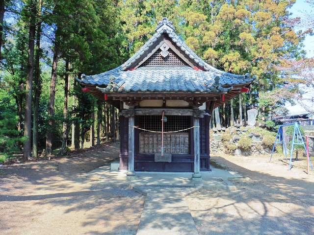 ムラの神社って感じのこじんまりとした社殿。本殿は覆屋に覆われていて見ることはできない。