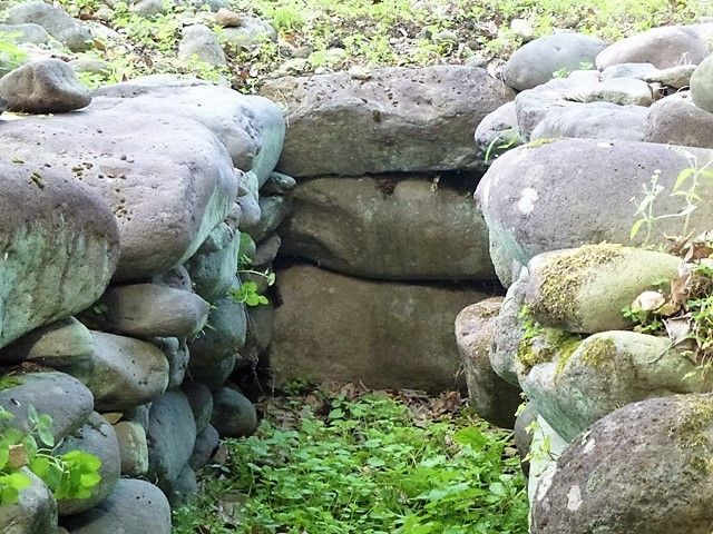 4号墳は天井石はなく、石室が剥き出しの状態。全長約4.2m、埋葬部長さ約2m、幅約70cm。安山岩を用いた乱石積の袖無型横穴式石室。