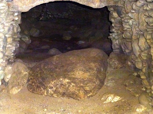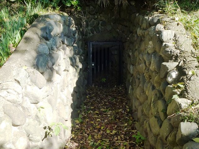 玄室は良く見えなかった。オレのデジカメの限界。2枚目の写真の上の方に、わずかに模様積みが見えるけど・・・。データによると玄室長4.97m、同幅1.31~1.73m、同高さ1.57~1.84m。片岩と珪岩を用いた模様積で、平面形は羽子板状。