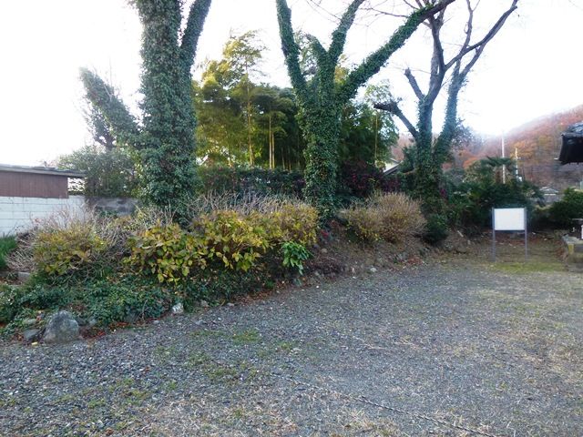 現在でも西・南側の一部と北側には土塁が残され、その外側には堀跡の痕跡が認められる。