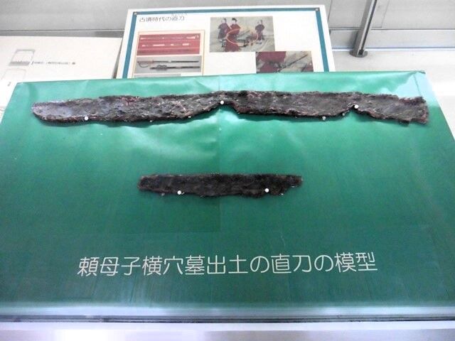 板倉町文化財資料館に展示されている昭和2年出土とされる鉄製直刀(レプリカ)。副葬品があったことから「古代豪族の墓」とされている。
