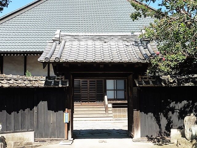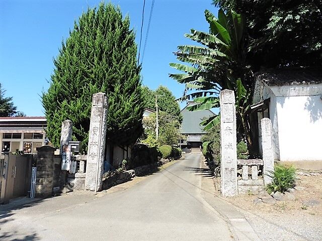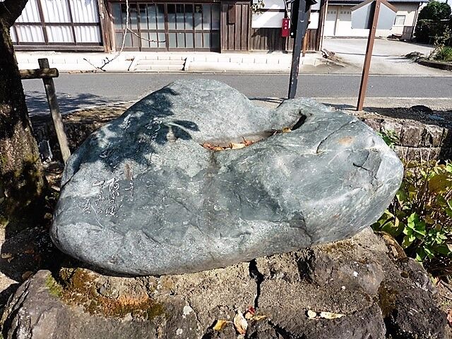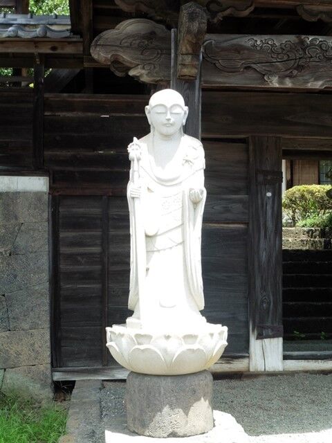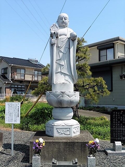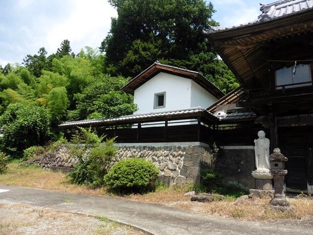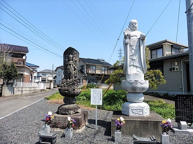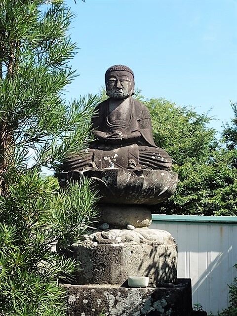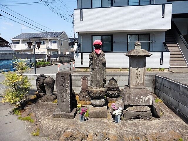 観音三尊の隣に石造薬師如来立像(像高約104cm)がある。右肩から左脇へ切り裂きがあり、地元では「袈裟切薬師」と呼ばれている。像容は頭部螺髪で厚肉彫りである。凝灰岩製で室町時代の作とされる。