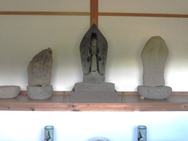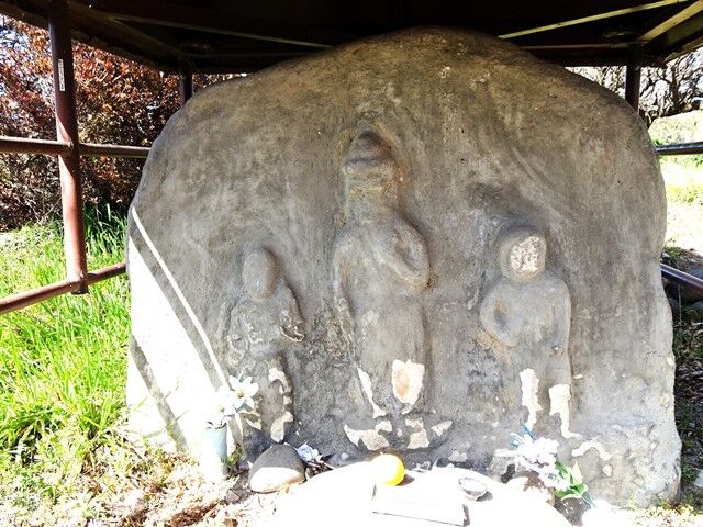 観音三尊像、薬師如来像のどちらも風化・損傷が進んでいるので、小屋型の覆屋内に納めた方が良いと思う。どこの自治体でも文化財保護には、なかなか予算が付かないのが実情だけど。